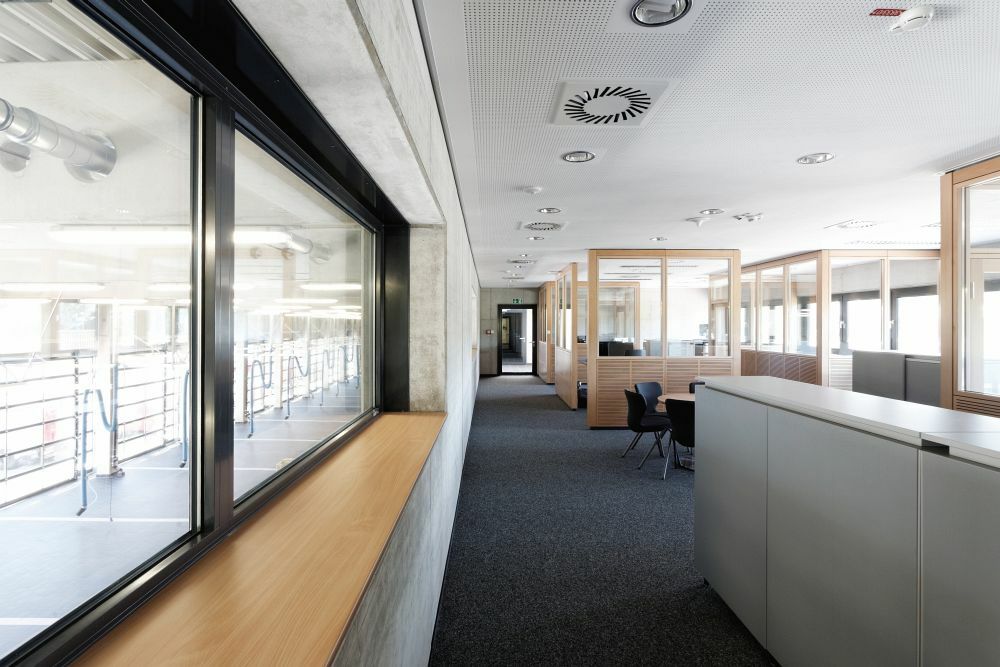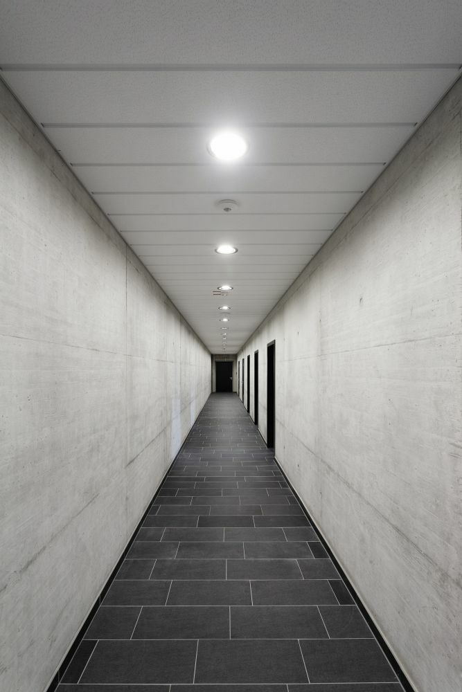 Um den funktionellen Aspekt des Stützpunktes zu unterstreichen, werden die Wände im Regelfall nicht zusätzlich mit einem Belag versehen; im gesamten Stützpunkt kommt Sichtbeton als Finishbelag zum Tragen.